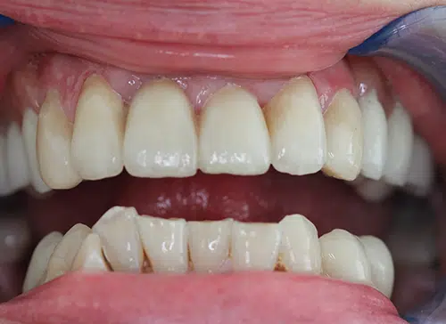Straightening of the upper four front teeth using Inman Aligner treatment.