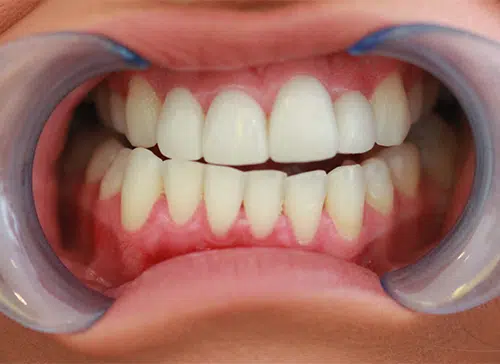 Invisalign Braces used to straighten upper and lower teeth (picture of upper teeth).